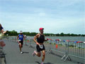 I pushed. T2 Run - 13.1m And before I knew it I was half way at about 52 minutes. So I dialed it up just a notch to keep this good rhythm and not burn out to early knowing that the last three miles or so I would dial it up again. I wanted these increases to happen smoothly - something I've been working on in my run. And sure enough I took my HR to about 149-151. At this point I was forgetting my mile calculations so I wasn't sure of my pace but comfortable with knowing that I was about even. And somehow I calculated that I would end up with 8mm which was my target. So I was right on pace and relatively comfortable- that was the weird thing. At mile nine I was passed slowly by a tall runner and I decided I could increase my speed some now while drafting him into the wind (back into town). I kept right on his feet and by the time we hit the 10 mile mark we were on a 7mm pace. My HR was at 152 and I was getting excited at my ability to keep this up all the while getting closer to the finish line. I joked with my pacer and confirmed I wasn't annoying him, and he was happy in front just so long "you don't pass me in the sprint finish" - agreed. But he took off not too much after that. And the next thing I see is the 12 mile mark! What? Where is 11? I clearly missed the 11 mile mark- possibly from my focus on the feet in front of me. Who cares, pick it up, I kept my pacer in my sights about 50 yards up and slowly tried to gain ground but he was in overdrive. The finish chute was there before I knew it. I sprinted through